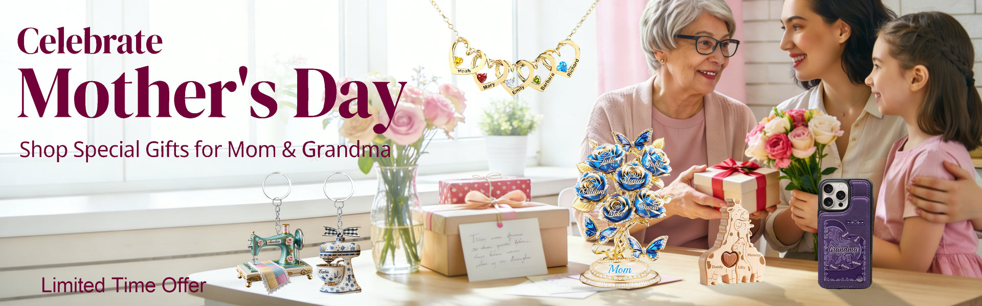 Personalized Heart Name Birthstone Necklace For Mom Grandma